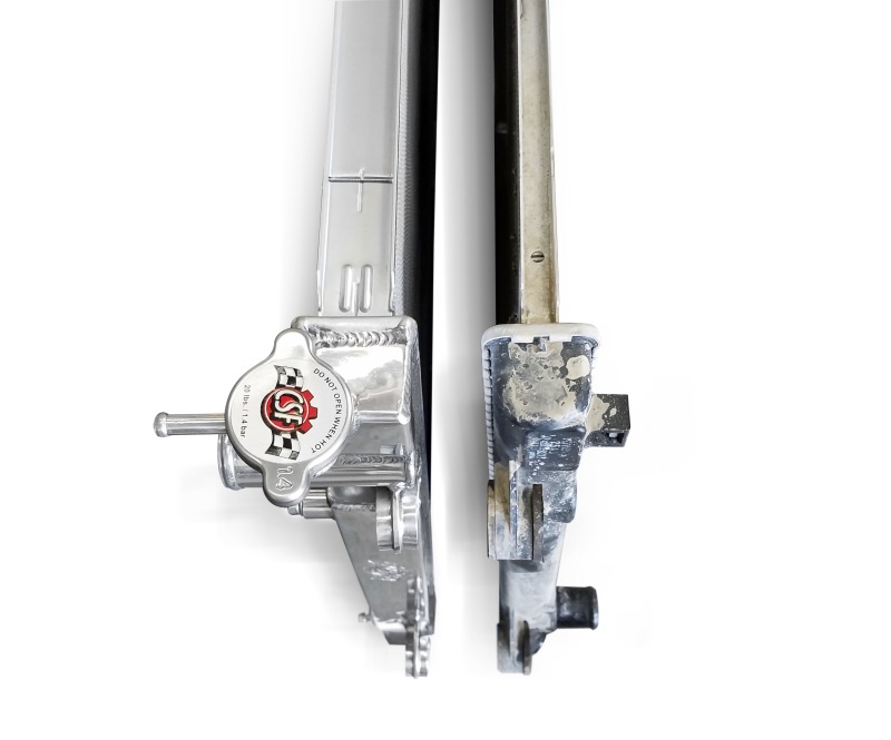 Radiator - 25.563 in W x 21.563 in H x 0.938 in D - Single Pass - Passenger Side Inlet - Driver Side Outlet - Aluminum - Polished - Toyota Compact Truck 2005-20 - Each