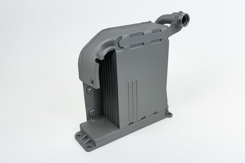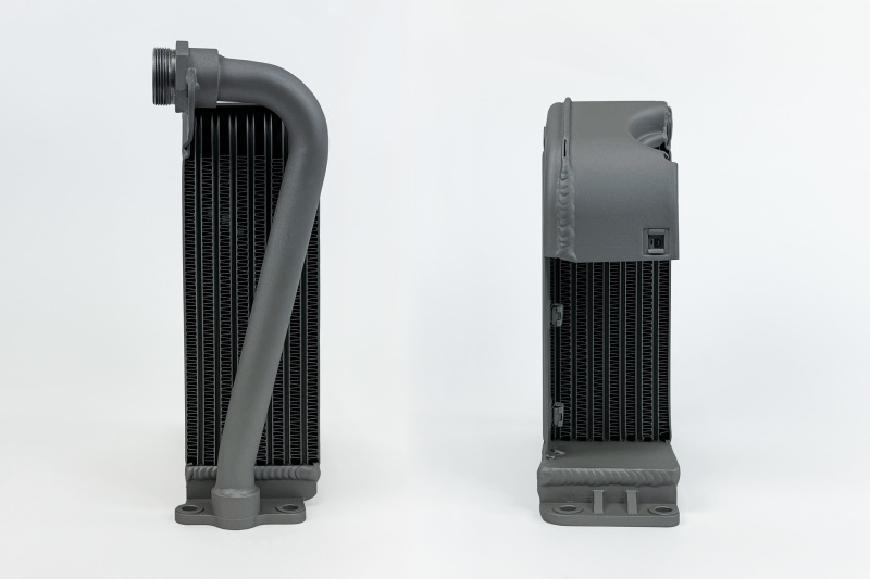 CSF understands Porsche purists want to keep an OEM look even when upgrading the performance and reliability of their 914s. This was a driving factor behind many of the cosmetic features of the oil cooler. The top of the cooler is stamped with the OE Part Number just below the CSF logo. In addition, the cooler comes in a Titanium color Thermal Heat Dispersion Cerakote finish. This advanced finish is durable, improves heat dissipation, is anti-corrosive, and offers a very classy OEM+ look to the cooler. A modern upgrade over the original. No details were overlooked in the design of the CSF cooler. The curvature of the case matches the original precisely and includes all the fine details. The spark plug aperture matches up perfectly with the valve cover for a perfect fit. Built into the machined base plate are small but important details such as the raised mounting pads and strengthening ridges.