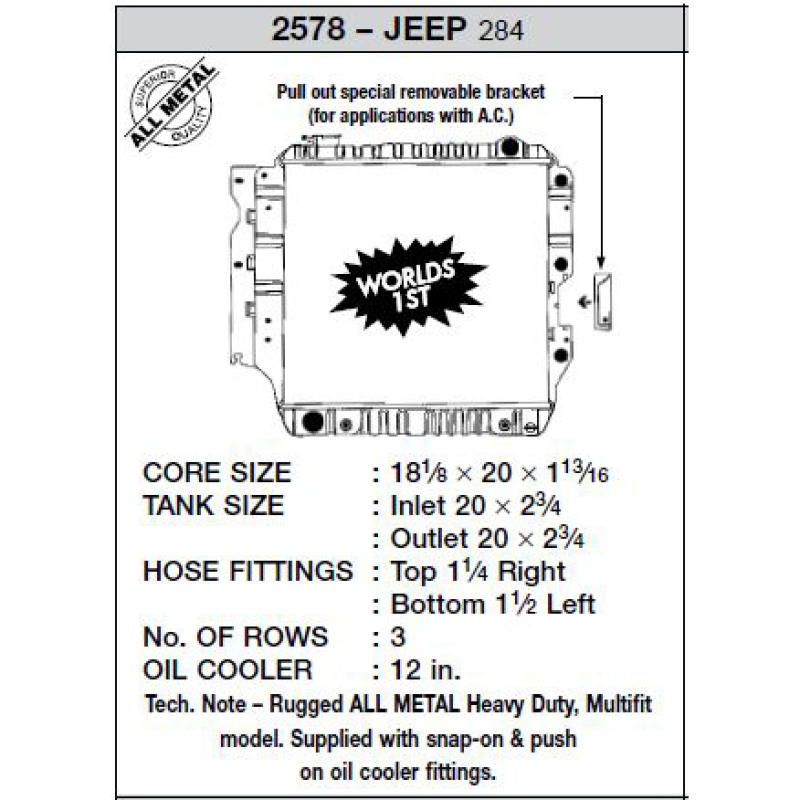 World exclusive multi-fit model, only from CSF - fits all automatic and manual Wrangler YJ and TJ models. CSF's #1 selling copper/brass Jeep model with over 20,000 sold - a cult favorite among Jeep enthusiasts who wish to keep their original style copper/brass radiator, but desire higher performance and more durability. CSF has over 5 decades of experience manufacturing radiators. So when it comes to keeping your engine cool and your Wrangler running at its finest, a CSF Heavy-Duty Radiator is the obvious choice. CSF has spent years refining and improving their radiator designs. The original style copper/brass construction features ribbed brass end tanks for additional strength and reinforced side end plates and integrated metal core straps to withstand heavy vibration and chassis flex while off-roading. The 3-Row 46mm Heavy-Duty and High-Performance Copper Core offers the best cooling available in a design that is a true "drop-in" fit with no modifications necessary for installation. Whether you are off-roading, towing, or just casually driving your Wrangler, trust the cooling experts at CSF for the best performing, high-quality, and reliable radiators.
