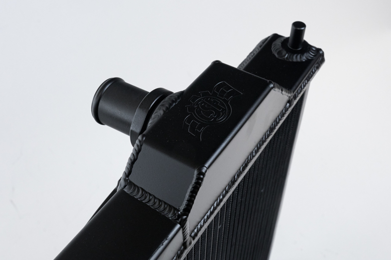 Radiator - 27 in W x 14.75 in H x 1.25 in D - Single Pass - Driver Side Inlet - Driver Side Outlet - Fan / Shroud Included - Aluminum - Black Powder Coat - Mitsubishi Lancer 2003-06 - Each