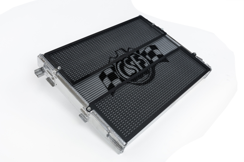The CSF Heat Exchanger features a 2-Row (vs OEM single row) Core that is 42mm thick with CSF's Exclusive B-Tube Technology. Increasing the size of the core and end tanks adds to the overall volume of the system which helps absorb more heat. The more efficient core not only helps dissipate more heat from the system, but also provides better airflow into the radiator that sits behind the heat exchanger. For vehicles equipped with the ZF8 Automatic Transmission, the heat exchanger core specifications were design concurrently with CSF's new Race-Spec Dual Core Transmission Oil Cooler (CSF #8221). The two included Black Rock Guards offer full protection for the heat exchanger (above and below the crash bar), especially when paired with aftermarket "open face" race style grilles. These grilles have become quite popular for performance and aesthetics, and keeping your heat exchanger safe from debris is very important. With well over 100 track hours worth of testing and thousands of miles on the road, you can be assured that the CSF's new High-Performance Front Mount Heat Exchanger has been thoroughly tested and vetted.