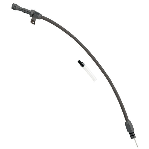Product Description Transmission Dipstick - Transmission Mount - Flexible - OEM Length - Braided Stainless - Aluminum - Black Anodized - 700R4 - Each