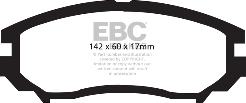 EBC Yellowstuff is an aramid fibre based brake compound with high brake effect form cold and is possibly one of the first ever compounds that can be used for STREET AND TRACK DRIVING. These pads do not require warm up but do get even stronger under the heat of hard driving. These are not a low dust pad and if your desire is for a low dust premium street use pad, you should consider EBC Redstuff.When considering full race use, Yellowstuff has been a strong favourite, having been used for two years in the Swedish Camaro Cup and at numerous other race events where a stock caliper system is fitted.It is also the choice of 90-percent of the Mazda MX5 Miata competitors in the UK race series and has an unblemished record as rotor friendly track pad for vehicles up to 2000 lbs weight or 200 BHP.In the USA the SCCA and NASA drivershave been testing Yellowstuff with feedback and good reports POURING in from a 543 test driver major market proving event with these groups. Read that figure again 543 test drivers.There is no guesswork here.