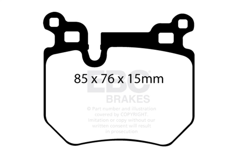 EBC Yellowstuff is an aramid fibre based brake compound with high brake effect form cold and is possibly one of the first ever compounds that can be used for STREET AND TRACK DRIVING. These pads do not require warm up but do get even stronger under the heat of hard driving. These are not a low dust pad and if your desire is for a low dust premium street use pad, you should consider EBC Redstuff.When considering full race use, Yellowstuff has been a strong favourite, having been used for two years in the Swedish Camaro Cup and at numerous other race events where a stock caliper system is fitted.It is also the choice of 90-percent of the Mazda MX5 Miata competitors in the UK race series and has an unblemished record as rotor friendly track pad for vehicles up to 2000 lbs weight or 200 BHP.In the USA the SCCA and NASA drivershave been testing Yellowstuff with feedback and good reports POURING in from a 543 test driver major market proving event with these groups. Read that figure again 543 test drivers.There is no guesswork here.