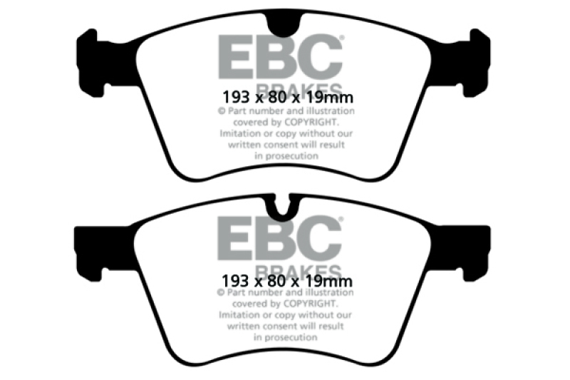 If you simply need a quality OEM replacement pad, look no further than Ultimax. Made in the UK Bristol EBC Brakes manufacturing plant Ultimax is a beautifully engineered brake compound that lasts well, produces minimal dust and is the perfect choice for the urban or daily driver. Why spend more if all you need is a quality replacement pad.The Ultimax pad does include a small percentage of steel fibre to achieve its price point, far less content than our competition where steel fibre content can attain 50 volume and this optimum fibre blend is what makes Ultimax both popular and unique amongst brake blends .Once bedded in Ultimax will inspire confidence in any car light truck or SUV no matter how you drive.Its universal heat range abilities and low rotor wear are additional benefits of the Ultimax pad range which is the EBC worldwide number one selling brake with numbers of sets sold running into tens of millions over the recent years. Unlike many of our performance grades Ultimax has remain unchanged as a pad compound for ten years now, a true testament to its success and customer acceptance. Why change a winning formula.Black coded in the EBC range EBC Ultimax is a fully ECE R 90 approved brake pad range and at its lower price point, less than HALF the price of original parts yet TOTALLY EQUIVALENT by nature of its R 90 brake safety approval, Ultimax offers great value for money and first class driving safety.When replacing brakes of any kind please remember how important brake safety is to your own well being and either have a professional mechanic install your new brakes or if you are a qualified mechanic use the EBC installation DVD as a guide in support of your vehicle owner's manual. These installation guide DVD tasters can be viewed here and the full DVD purchased from online vendors.