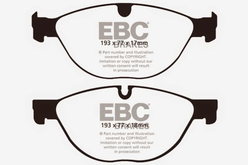 EBC Yellowstuff is an aramid fibre based brake compound with high brake effect form cold and is possibly one of the first ever compounds that can be used for STREET AND TRACK DRIVING. These pads do not require warm up but do get even stronger under the heat of hard driving. These are not a low dust pad and if your desire is for a low dust premium street use pad, you should consider EBC Redstuff.When considering full race use, Yellowstuff has been a strong favourite, having been used for two years in the Swedish Camaro Cup and at numerous other race events where a stock caliper system is fitted.It is also the choice of 90-percent of the Mazda MX5 Miata competitors in the UK race series and has an unblemished record as rotor friendly track pad for vehicles up to 2000 lbs weight or 200 BHP.In the USA the SCCA and NASA drivershave been testing Yellowstuff with feedback and good reports POURING in from a 543 test driver major market proving event with these groups. Read that figure again 543 test drivers.There is no guesswork here.