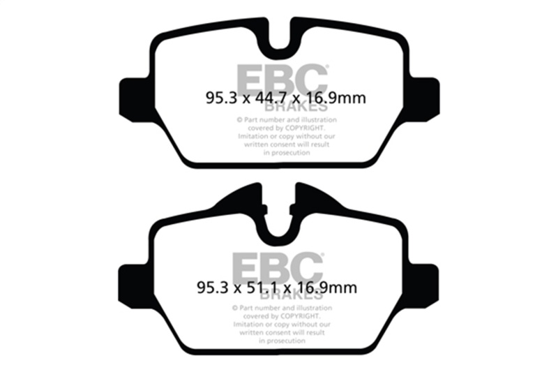 Designed for premium street driving offering better brake effect up to 600-degrees C (1100-degrees F). EBC Greenstuff has a high initial brake effect and gives drivers confidence from first application of the brake pedal. There is no such thing as a NO DUST pad. The very nature of how a brake works requires that some dust be generated to avoid rotor vibration (shimmying). The EBC pad creates less dust and dust is more easily washed off than most. All pads create more dust as they are bedding in especially if rotors are worn. Nominal friction coefficient 0.55. For heavier faster cars and vehicles above 200bhp we strongly recommend Redstuff which DOES offer much less dust.