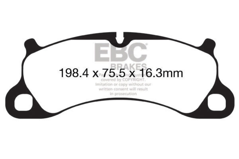 There are TWO reasons our customers love Redstuff, First because they are the lowest dust pad we have encountered by reducing dust by 60-90-percent. Plus the minimal dust you see is very easily removed with a simple sponge wash as it contains no steel fibre particles as in ALL OTHER pads. Second they brake like an alligator right from cold (as good as Original pads or better) and just get better as they heat up.This material is a Synthetic Fiber based brake compound enhanced with ceramic particles. If you have previously tried EBC redstuff (pre-ceramic compound) this material is light years ahead. It lasts longer; it brakes better and is quieter. Being a hard wearing pad, bed-in times can be as long as 1000 miles and drivers must be patient until the pad takes up the shape of their disc (brake rotor). This is a truly impressive fast road pad for repeated heavy braking.It emits far less dust than semi-metallic pads and has been proven to stop a passenger car/sedan/sport compact/hot hatch 13 metres quicker than OEM pads from 100mph/160kph. Features EBC Brake-In surface coating which conditions rotor surface and accelerates pad bed-in. Nominal friction coefficient 0.5 with approx. 50-percent dust reduction.Most EBC Red Ceramic pads are approved to ECE R90 brake safety regulation.