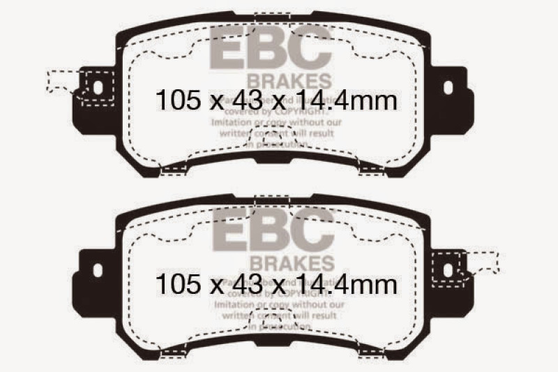 Designed for premium street driving offering better brake effect up to 600-degrees C (1100-degrees F). EBC Greenstuff has a high initial brake effect and gives drivers confidence from first application of the brake pedal. There is no such thing as a NO DUST pad. The very nature of how a brake works requires that some dust be generated to avoid rotor vibration (shimmying). The EBC pad creates less dust and dust is more easily washed off than most. All pads create more dust as they are bedding in especially if rotors are worn. Nominal friction coefficient 0.55. For heavier faster cars and vehicles above 200bhp we strongly recommend Redstuff which DOES offer much less dust.