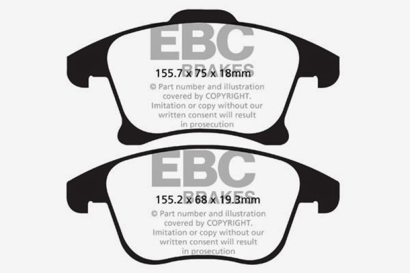 There are TWO reasons our customers love Redstuff, First because they are the lowest dust pad we have encountered by reducing dust by 60-90-percent. Plus the minimal dust you see is very easily removed with a simple sponge wash as it contains no steel fibre particles as in ALL OTHER pads. Second they brake like an alligator right from cold (as good as Original pads or better) and just get better as they heat up.This material is a Synthetic Fiber based brake compound enhanced with ceramic particles. If you have previously tried EBC redstuff (pre-ceramic compound) this material is light years ahead. It lasts longer; it brakes better and is quieter. Being a hard wearing pad, bed-in times can be as long as 1000 miles and drivers must be patient until the pad takes up the shape of their disc (brake rotor). This is a truly impressive fast road pad for repeated heavy braking.It emits far less dust than semi-metallic pads and has been proven to stop a passenger car/sedan/sport compact/hot hatch 13 metres quicker than OEM pads from 100mph/160kph. Features EBC Brake-In surface coating which conditions rotor surface and accelerates pad bed-in. Nominal friction coefficient 0.5 with approx. 50-percent dust reduction.Most EBC Red Ceramic pads are approved to ECE R90 brake safety regulation.