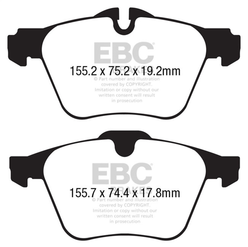 EBC Yellowstuff is an aramid fibre based brake compound with high brake effect form cold and is possibly one of the first ever compounds that can be used for STREET AND TRACK DRIVING. These pads do not require warm up but do get even stronger under the heat of hard driving. These are not a low dust pad and if your desire is for a low dust premium street use pad, you should consider EBC Redstuff.When considering full race use, Yellowstuff has been a strong favourite, having been used for two years in the Swedish Camaro Cup and at numerous other race events where a stock caliper system is fitted.It is also the choice of 90-percent of the Mazda MX5 Miata competitors in the UK race series and has an unblemished record as rotor friendly track pad for vehicles up to 2000 lbs weight or 200 BHP.In the USA the SCCA and NASA drivershave been testing Yellowstuff with feedback and good reports POURING in from a 543 test driver major market proving event with these groups. Read that figure again 543 test drivers.There is no guesswork here.