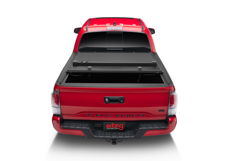 Introducing Extang's Xceed – a seamless and secure hard folding truck bed cover designed and engineered to greater expectations. This flush mounted, hard-folding cover offers full bed access when open, and adds a seamless and polished look to your truck when closed. Xceed was precisely Extang Engineered to provide excellent coverage while ensuring maximum security and ultimate style. Go completely sleek without minimizing the durability of your truck bed cover. Flush mounted to provide an extreme low profile appearance and engineered to complement your truck's functionality and looks. Xceed's matte black finishes are the final touches to enhance the overall appearance of your truck. Xceed also goes double duty on superior security. The EnduraCoat moisture-proof vinyl covering is dedicated to protecting your cargo from earth's elements and the Secure Rotary Release knob hides the operation cable to add an extra step of protection. Together, you can rest assured that your cargo is entirely secured. Stowing large cargo just got easier. Xceed folds all the way up to the back window, allowing complete, full bed access with a unique four-panel construction to reduce the overall height when open.