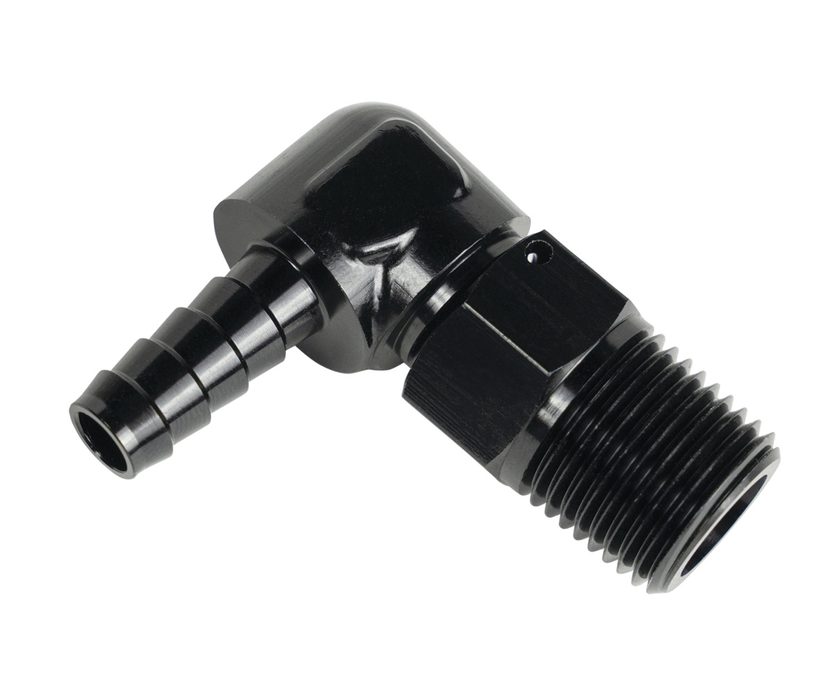 Product Description Fitting - Adapter - 90 Degree - 7/8-14 in NPT Male to 1/2 in Hose Barb - Aluminum - Black Anodized - Each