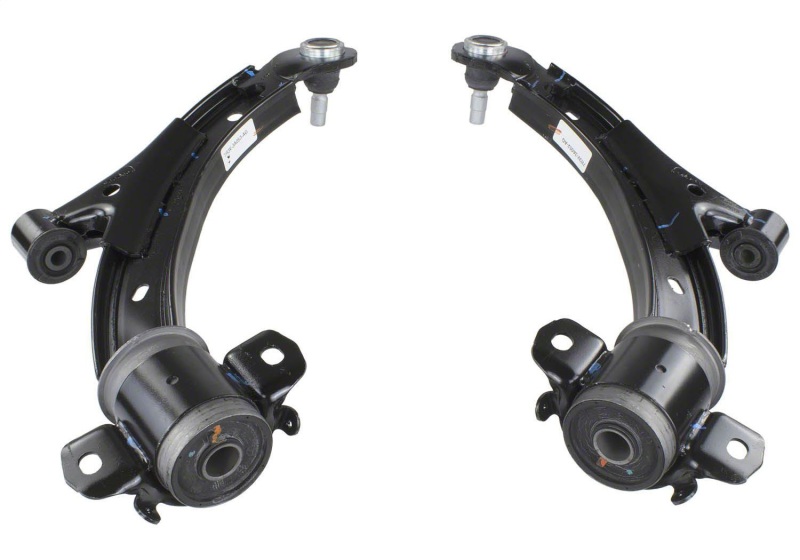 These front lower control arm kits enable the owners of Ford vehicles to upgrade them with low-friction ball joints and improved inner bushings. They feature a higher quality nylon bearing that dramatically improves impact harshness, resulting in a better ride. These kits are recommended when heavy-duty suspension components are added. They include left and right lower control arm assemblies, cotter pins, and instructions.