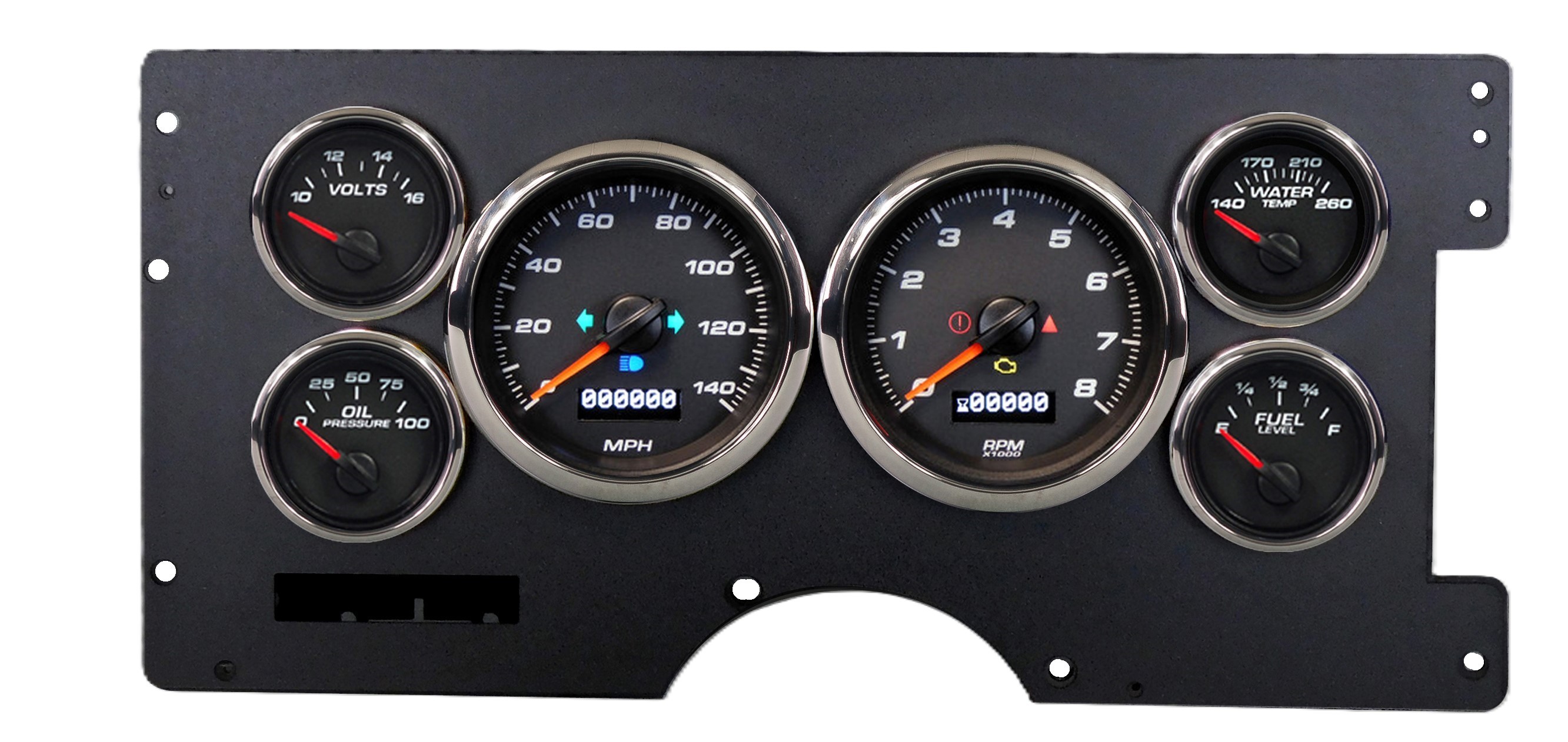 Product Description Gauge Kit - Performance - Analog - Fuel Level / Oil Pressure / Speedometer / Voltmeter / Water Temperature - Black Face - Fullsize Chevy Truck 1988-94 - Kit