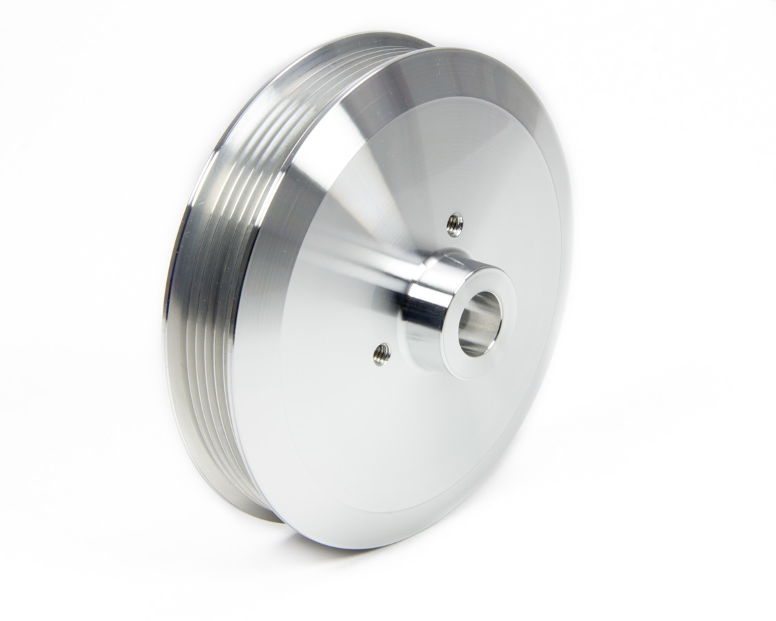 Product Description Power Steering Pump Pulley - Serpentine - 6-Rib - 3/4 in Press-On - 6 in Diameter - Aluminum - Clear Powder Coat - Long Water Pump - GM Pumps - Each