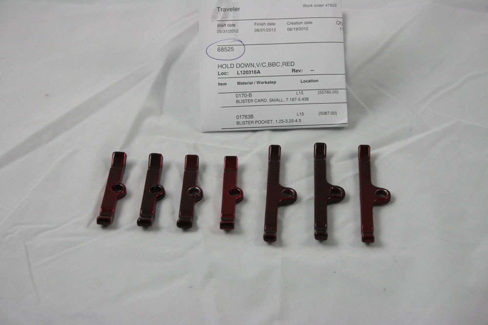 Product Description Valve Cover Hold Down Tabs - Steel - Red Powder Coat - Big Block Chevy - Set of 7