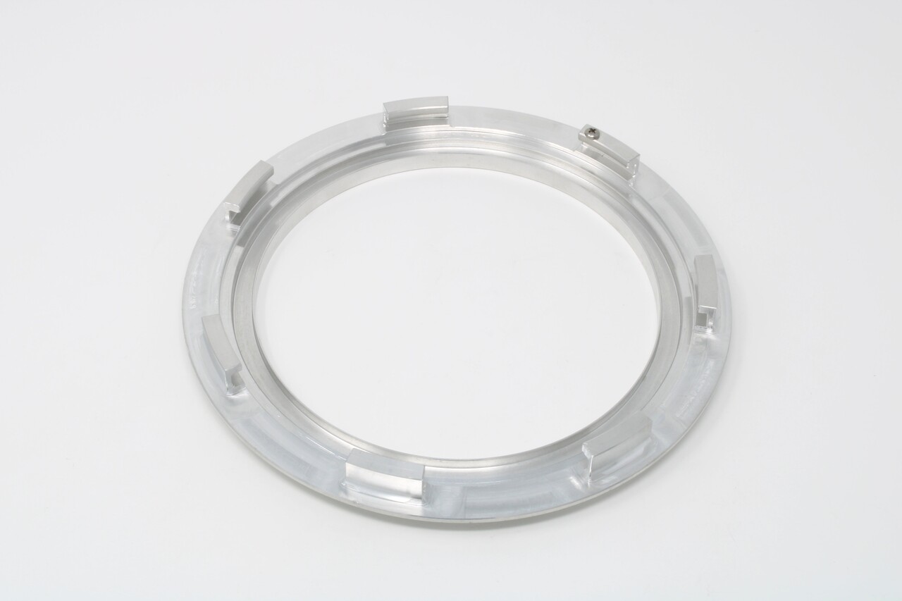 Product Description Fuel Pump Mounting Ring - 6 in Diameter - 6.375 in Mounting Hole - Twist-Lock - Aluminum - Natural - Each