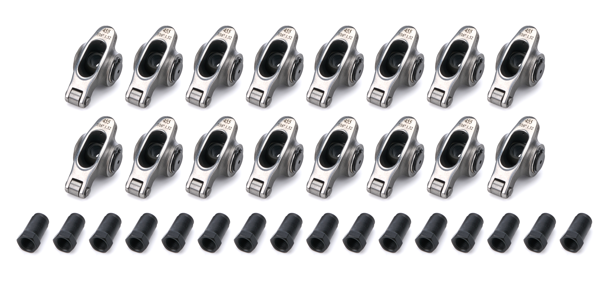 Product Description Rocker Arm - Elite Series - 7/16 in Stud Mount - 1.52 Ratio - Full Roller - Stainless - Pontiac V8 - Set of 16