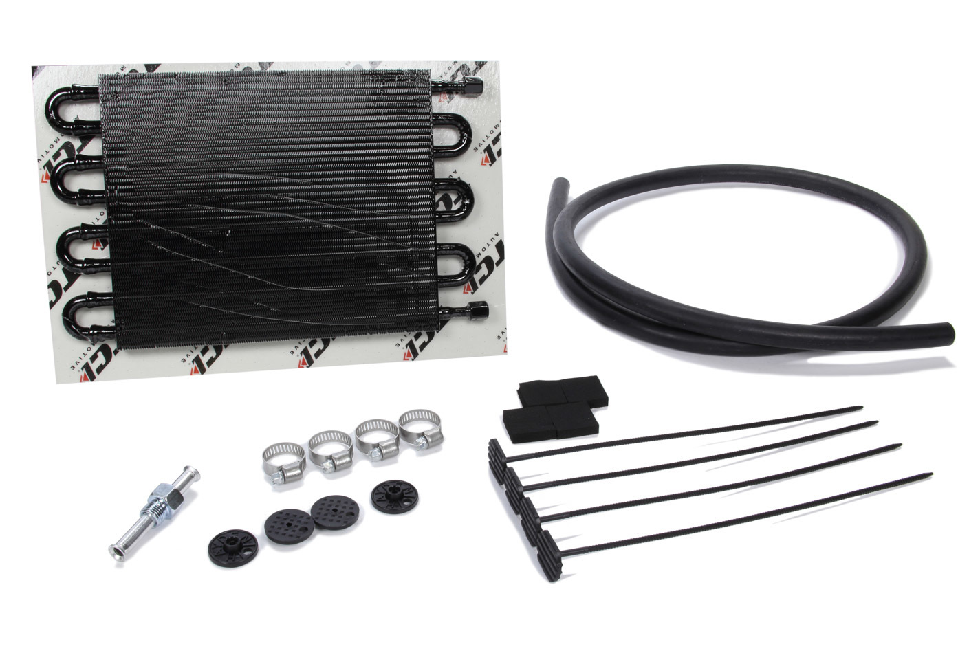 Product Description Fluid Cooler - 12.75 x 7.5 x 0.75 in - Tube Type - 6 AN Female Inlet / Outlet - Fitting / Hardware / Hose - Aluminum - Black Paint - Automatic Transmission - Kit