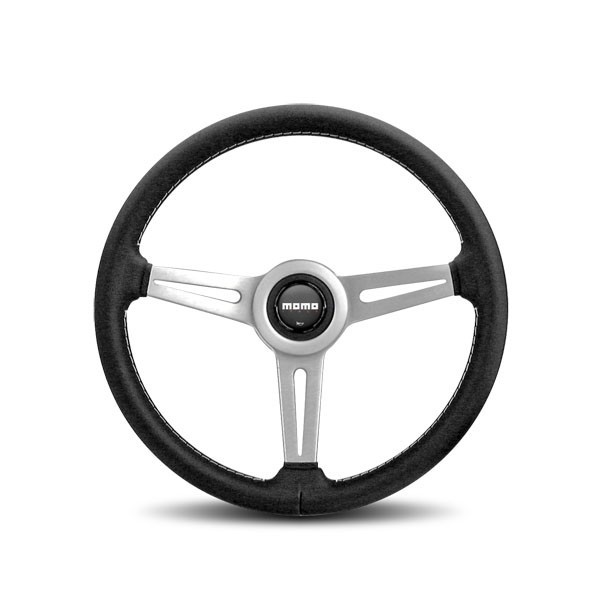 Product Description Steering Wheel - Retro - 360 mm Diameter - 40 mm Dish - 3-Spoke - Black Leather Grip - Aluminum - Brushed - Each