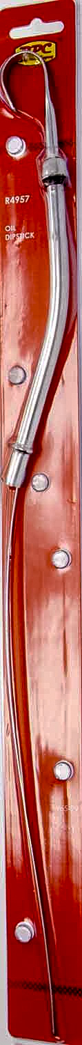 Product Description Engine Oil Dipstick - Solid Tube - Block Mount - 19 in Long - Steel - Chrome - Small Block Chevy - Each