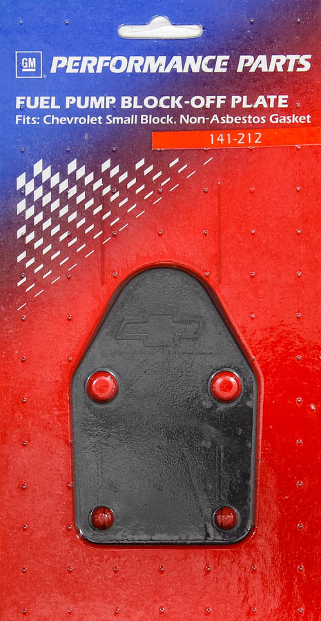 Product Description Fuel Pump Blockoff - Chevy Bowtie Logo - Steel - Black Paint - Small Block Chevy - Each