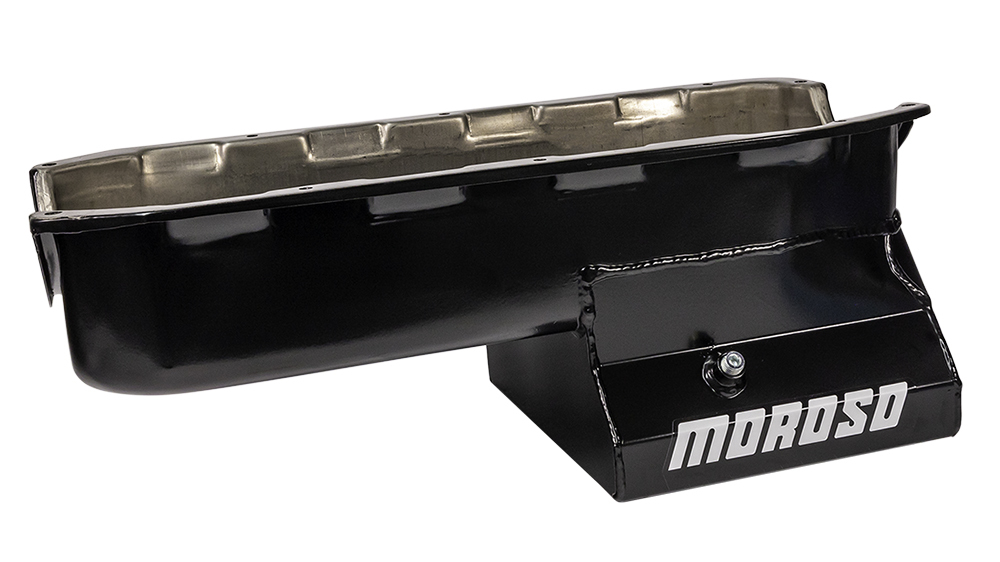 Engine Oil Pan - Street / Strip - Rear Sump - 7 qt - 8.25 in Deep - Steel - Black Powder Coat - 2-Piece Seal - Small Block Chevy - Each