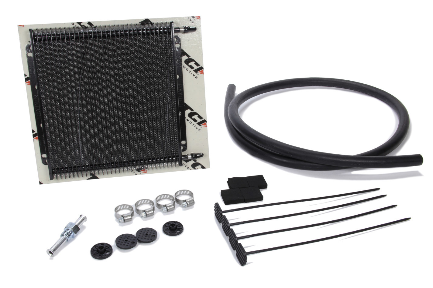 Product Description Fluid Cooler - Max Cool - 11 x 9.5 x 0.75 in - Plate and Fin Type - 11/32 in Hose Barb Inlet / Outlet - Fitting / Hardware / Hose - Aluminum - Black Paint - Automatic Transmission - Kit