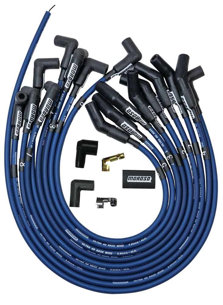 Product Description Spark Plug Wire Set - Ultra 40 - Spiral Core - 8.65 mm - Blue - 135 Degree Plug Boots - HEI Style Terminal - Cut-To-Fit - Small Block Ford - Kit