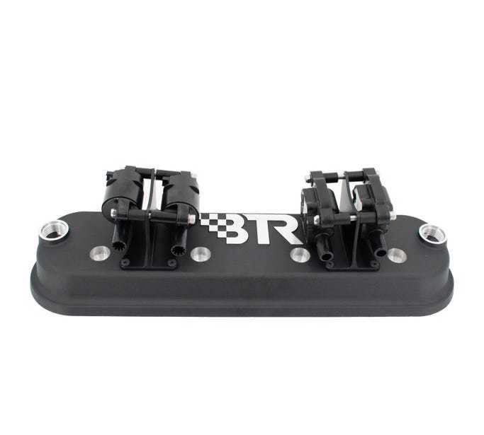 Product Description Valve Cover - 1.83 in Tall - Baffled - BTR Logo - Coil Mounts - Aluminum - Black Powder Coat - Pair