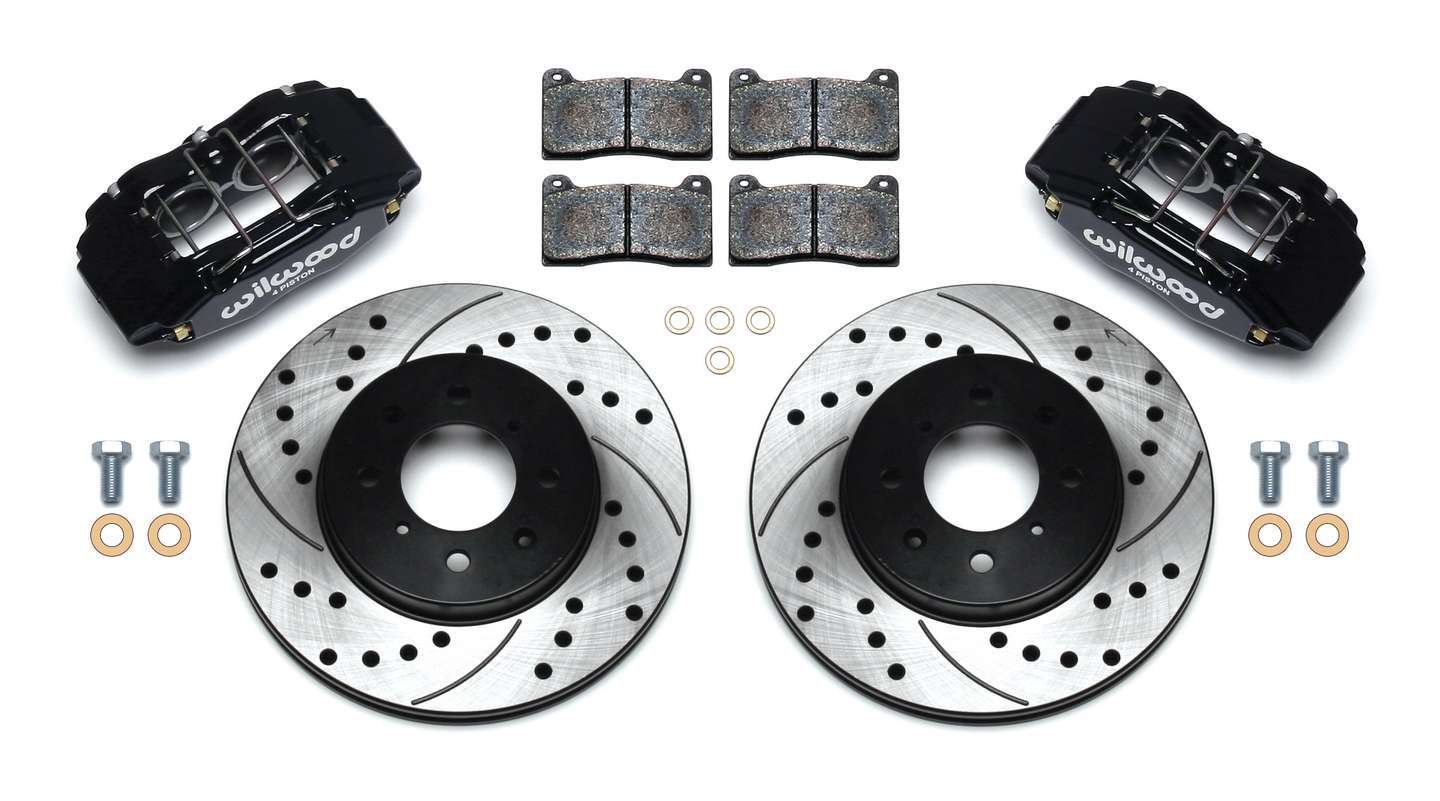 Brake System - Forged DPHA - Front - 4 Piston Caliper - 10.320 in Drilled / Slotted Iron Rotor - Offset Hat - Aluminum - Black Powder Coat - Acura Integra / Honda Civic / Fit 1990-2013 - Kit
