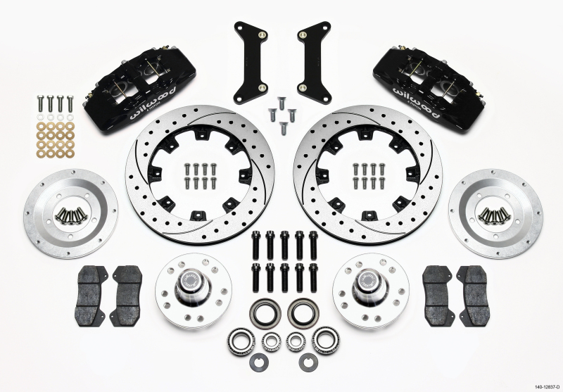 DynaPro 6 forged billet calipers are combined with 12.19” diameter rotors for this group of traditional non-ABS spindles on American muscle cars and vintage rods. The enhanced brake capacity and pad performance of the six piston calipers provide an intermediate level alternative to the bigger six piston kits. These kits compliment wheel, tire, and suspension upgrades on all types of custom show and high performance street / strip machines. A full range of caliper finishes and rotor designs enable the builder to personalize the style and optimize the brake performance for each individual application.