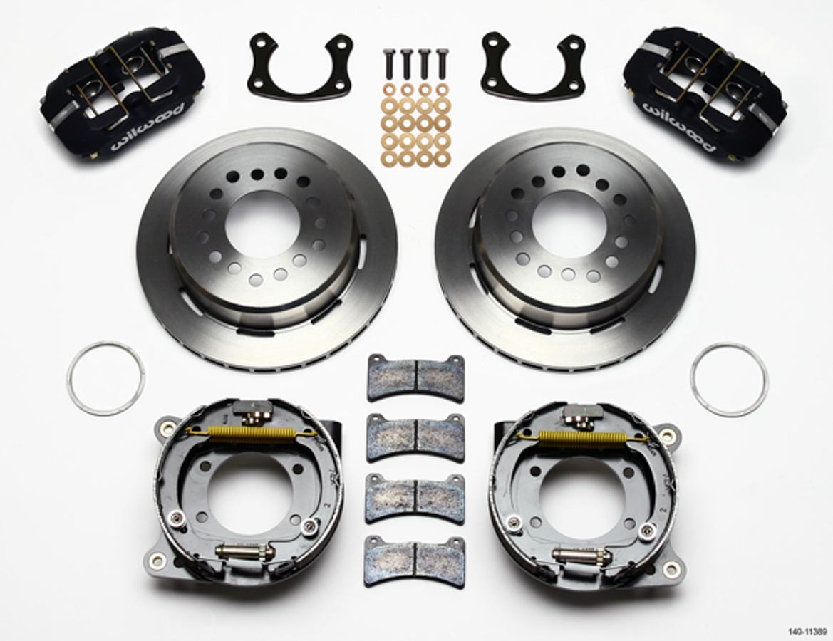 Product Description Specifications Brake System - Dynapro Low-Profile - Rear - 4 Piston Caliper - 11.000 in Plain Iron Rotor - Parking Brake / Offset Hat - Aluminum - Black Powder Coat - Big Ford - Kit MPN: 140-11389 Clearance Item: N