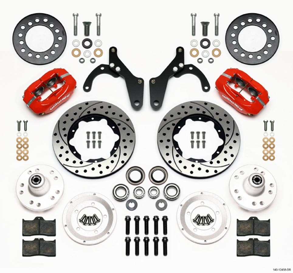 Brake System - Dynalite Pro Series - Front - 4 Piston Caliper - 11.000 in Drilled / Slotted Iron Rotor - Aluminum - Red Powder Coat - GM B-Body / Corvette 1959-64 - Kit