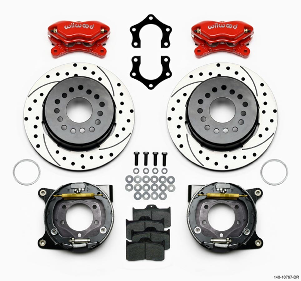 Product Description Specifications Brake System - Forged Dynalite - Rear - 4 Piston Caliper - 12.190 in Drilled / Slotted Iron Rotor - Parking Brake - 2-1/2 in Offset - Aluminum - Red Powder Coat - Mopar / Dana - Kit MPN: 140-10767-DR Clearance Item: N