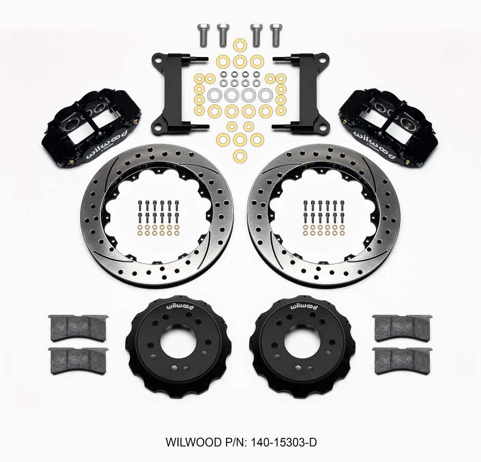 Brake System - Forged Narrow Superlite 6R - Front - 6 Piston Caliper - 13.060 in Drilled / Slotted Iron Rotor - Aluminum - Black Powder Coat - GM SUV / Truck 1963-87 - Kit